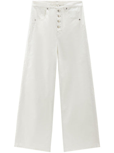 white stretch-cotton twill weave logo patch to the rear garment dyed high-waisted belt loops front button fastening two side slash pockets two rear patch pockets wide leg Wide leg denim jeans Size and Fit - This piece fits true to size. We recommend you get your regular size. Model is 1,75m / 5ft 8in wearing size 27 (WAIST CM)