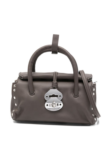 brown leather top handle silver-tone hardware internal slip pocket studded embellishment top clasp fastening This piece comes complete with a protective dust bag. Dotta Saeta baby leather handbag Size and Fit - DEPTH 12 cm. HEIGHT 11 cm. WIDTH 23 cm.