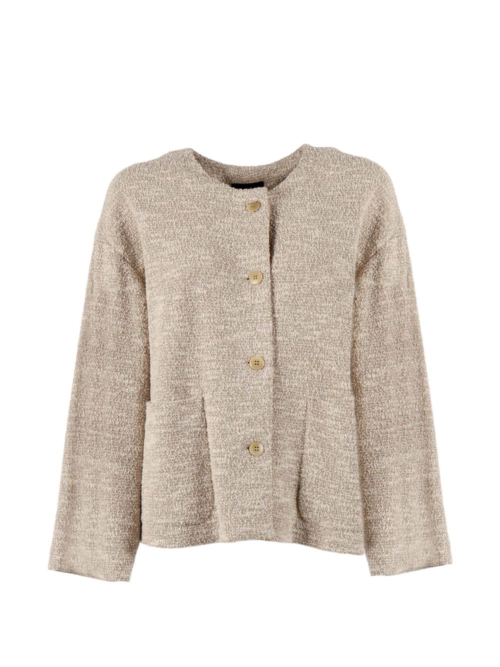 light brown round neck button fastening patch pockets long sleeves Cotton blend blazer jacket