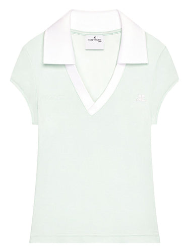 light mint V-neck short sleeves logo detail Logo cropped polo shirt