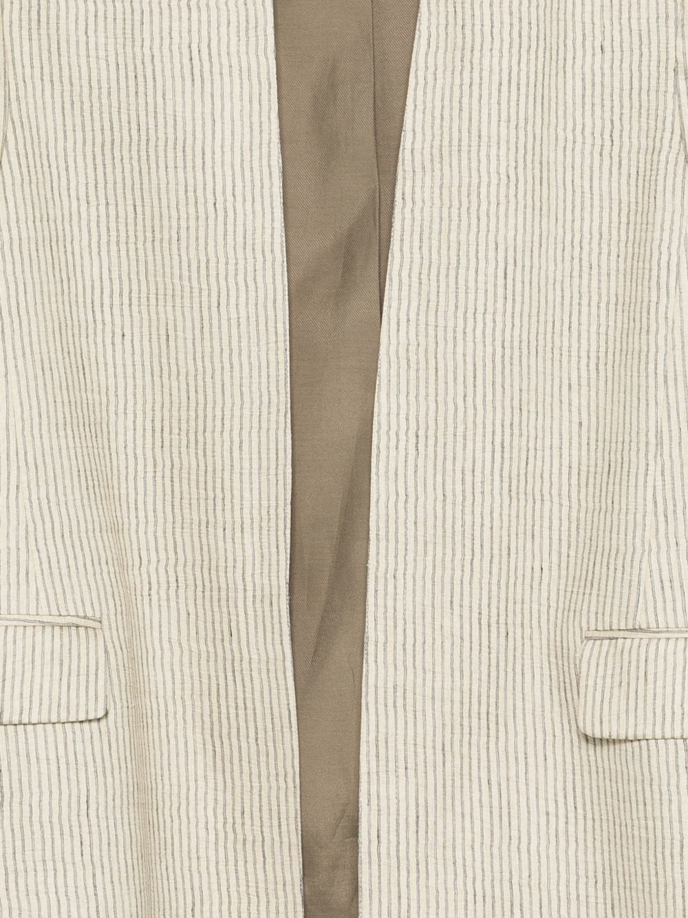 beige striped pattern front pockets buttoned cuffs collarless open front Oversized blazer jacket
