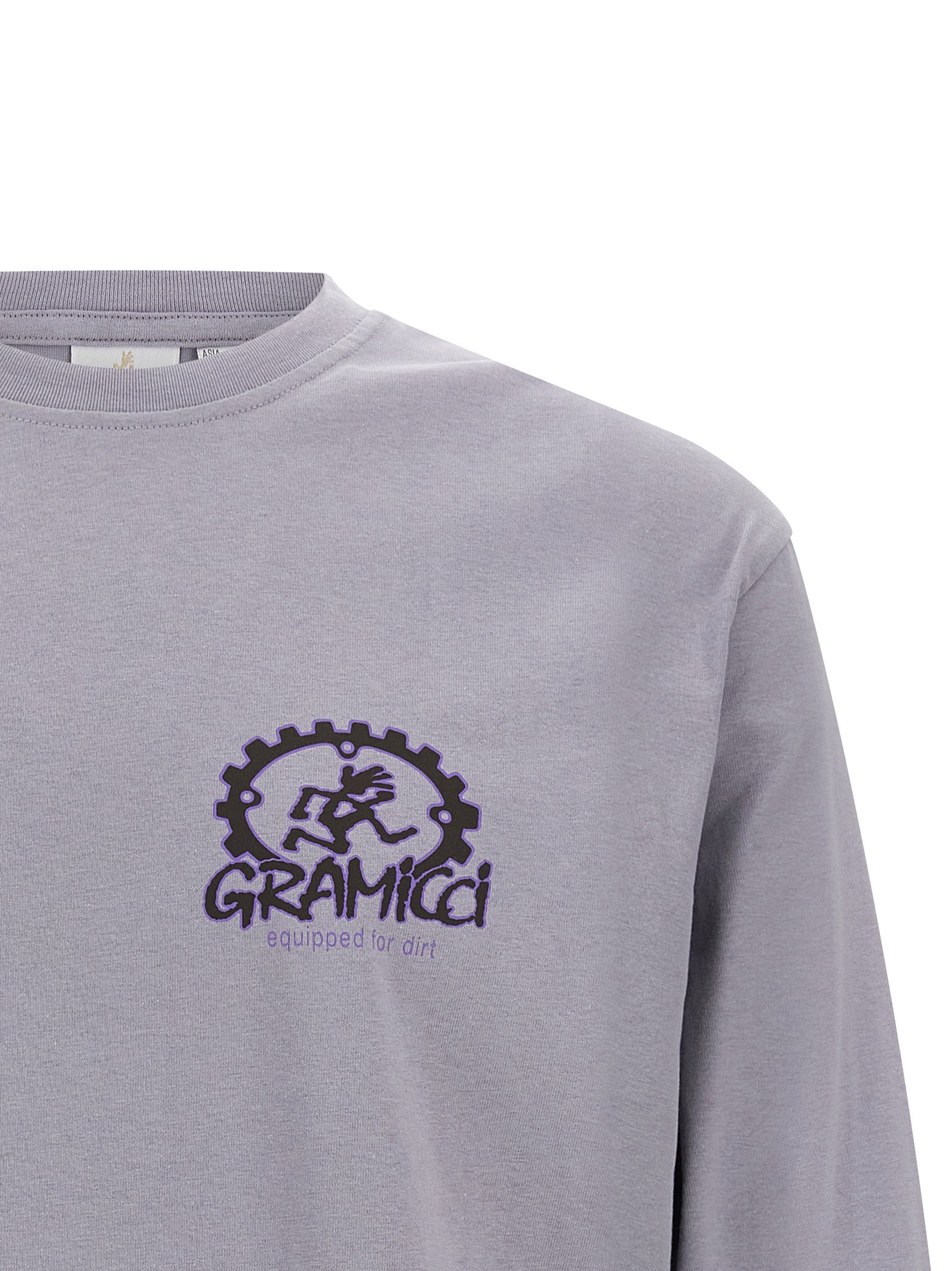 Cotton T-shirt with 'Equipped For Dirt' print on the front and back, crew neck, long cuffed sleeves and dropped shoulders. Size and Fit - true to size fit
