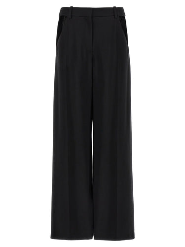 'Cut-Out' wool blend trousers, hook, button and zip closure, cut-out details at the waist, wide leg with central crease. Size and Fit - True to size fit