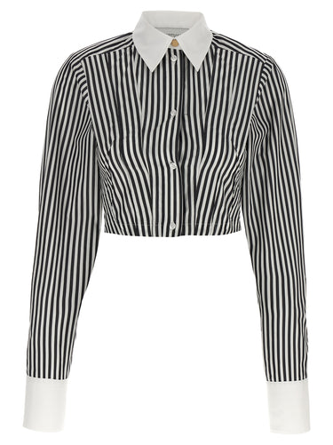 'Abano' striped cotton poplin shirt with solid color details, crop model, front button closure, long sleeves with _x000D_