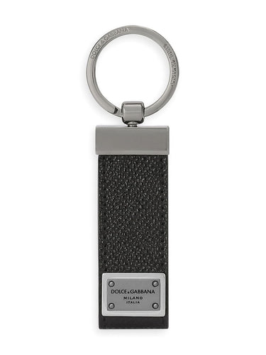 jet black calf leather blend pebbled texture silver-tone hardware silver-tone logo plaque split-ring fastening DG Logo leather key ring