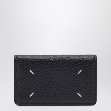 Maison Margiela cardholder in gray grained leather, featuring a Four Stitches detail on the back, snap button closure, two compartments for credit cards, and Numeric logo print inside. Size and Fit - Width 11 cm x Height 6 cm x Depth 2 cm