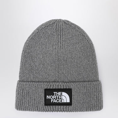 The North Face hat made of grey recycled fabric, featuring a cuff with a patch with logo lettering on the front.