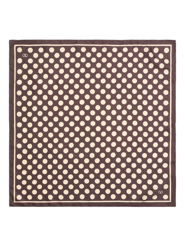 brown wraparound style polka dot print square shape contrasting border logo print to the front Printed silk foulard