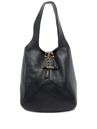 black calf leather two top handles toggle closure chain detail Chloé Balloon small leather hobo bag