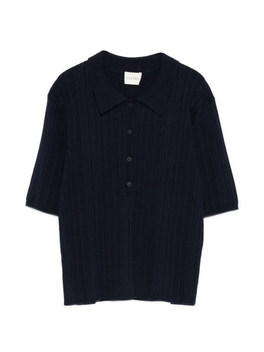 blue ribbed knit button fastening polo collar short sleeves Cotton polo shirt