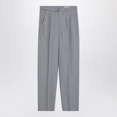 Lemaire pants in grey mélange wool blend, featuring two side welt pockets, one welt pocket on the back with a button, straight cut design with front pleat, removable belt with metal adjuster, zip fly, and belt loops. Size and Fit - Model wears size 36 FR Model measurements: Height: 180 cm Chest: 85 cm Waist: 60 cm Hips: 93 cm