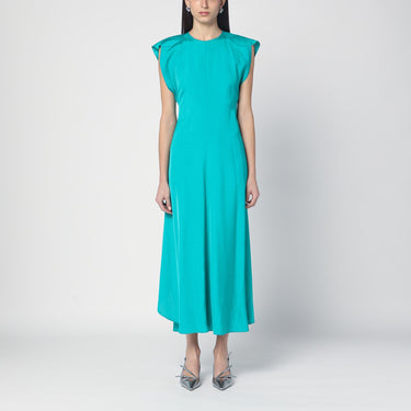 Victoria Beckham Peacock colour midi dress with hooded sleeves