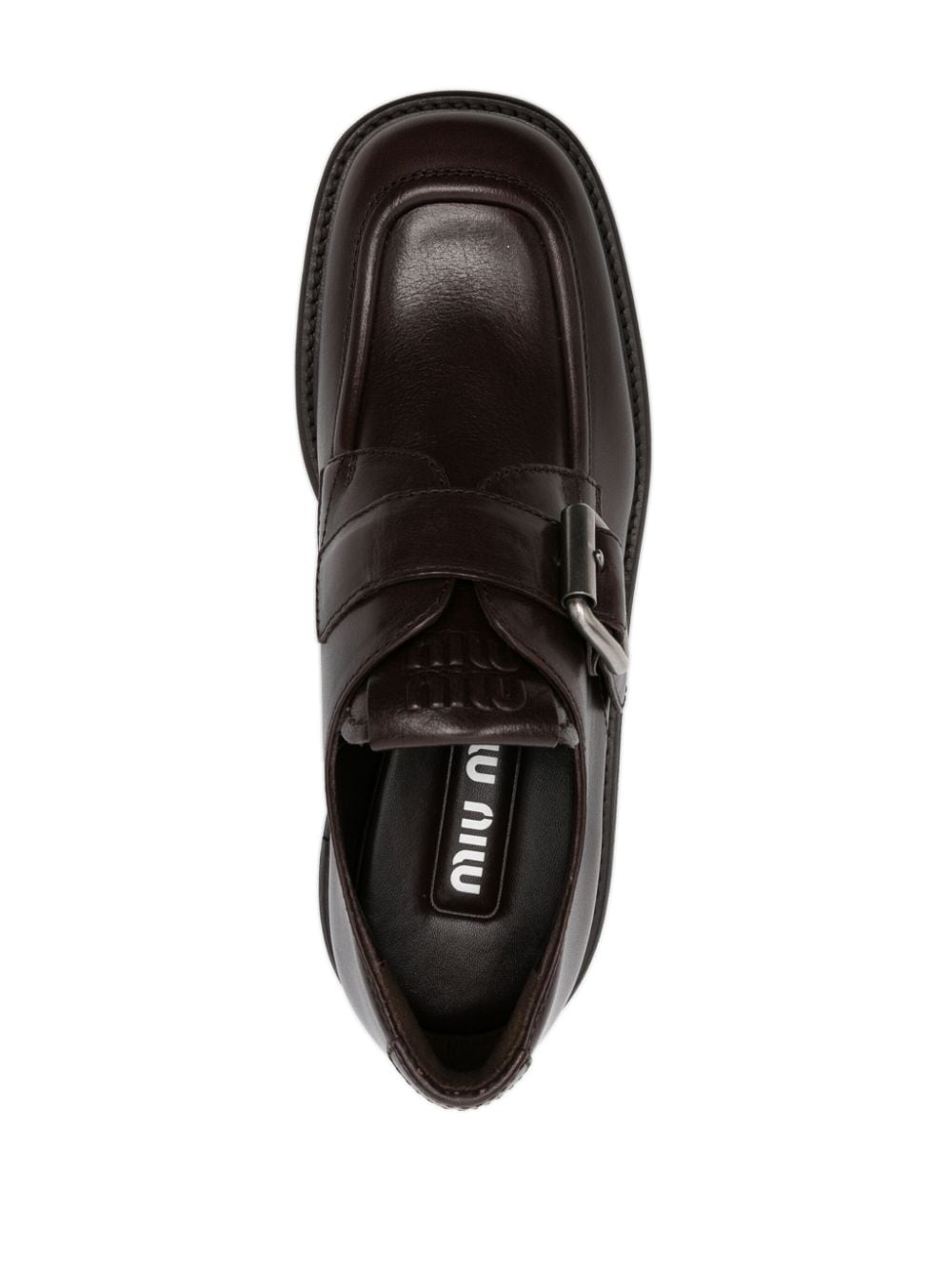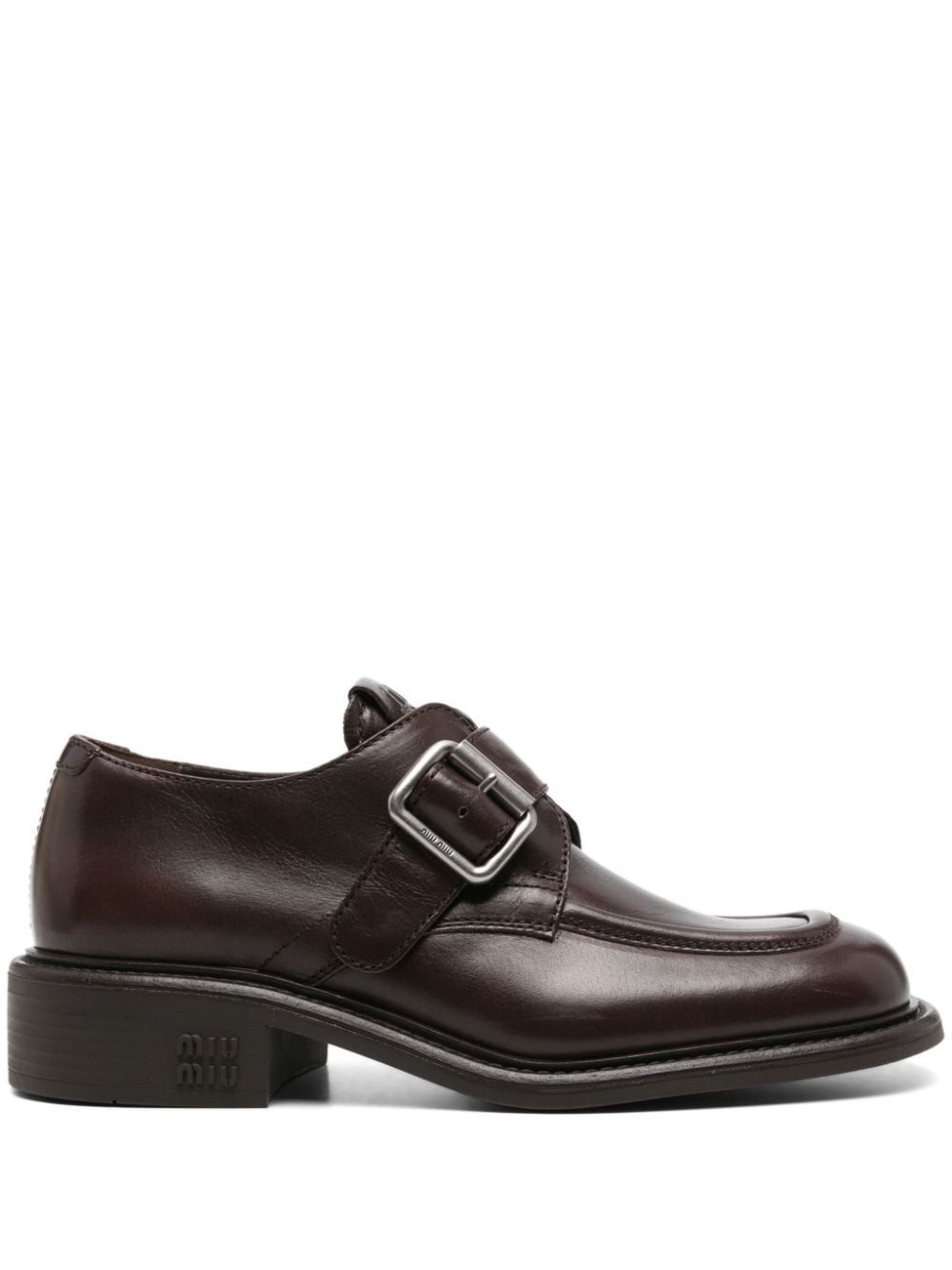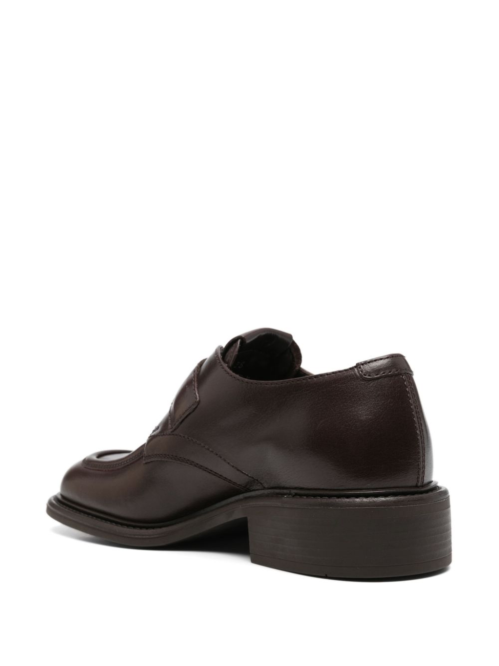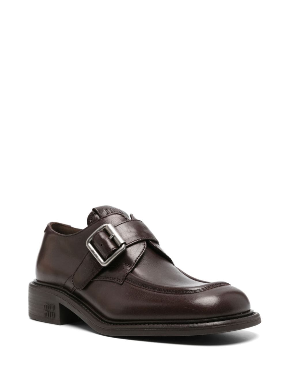 Brogues in pelle di vitello color cioccolato con grana liscia e chiusura con fibbia. Linguetta con logo goffrato, punta squadrata, soletta in pelle con logo e suola in gomma con marchio. Un modello essenziale e sofisticato per la stagione FW24 – Autunno/Inverno 2024.