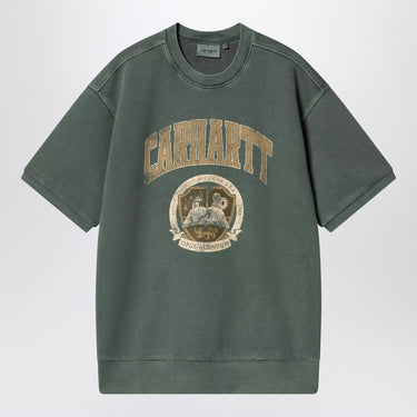 Carhartt WIP crew neck sweatshirt in heavy dark green cotton jersey, characterized by a loose fit, graphic logo print on the chest, short sleeves, and ribbed edges. Size and Fit - Model wears size L Model measurements: Height: 189 cm Chest: 104 cm Waist: 78 cm Hips: 95 cm