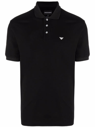 black cotton polo collar front button fastening short sleeves straight hem Cotton polo shirt