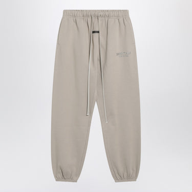 Jogging pants by Fear Of God Essentials in greige cotton blend, featuring an elasticated waistband with drawstring, two side pockets, front logo patch, dropped crotch, elasticated ankle cuffs, and raised front logo lettering embroidery. Size and Fit - Model wears size S Model measurements: Height: 178 cm Chest: 83 cm Waist: 63 cm Hips: 91 cm