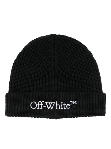 black/white wool chunky ribbed knit embroidered logo to the front turn-up brim unlined Bookish wool beanie