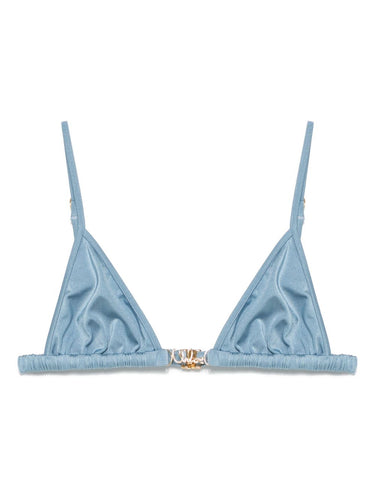 cobalt blue clasp fastening adjustable spaghetti straps triangle cup Be mindful to try on swimwear over your own garments. Bikini top with logo plate