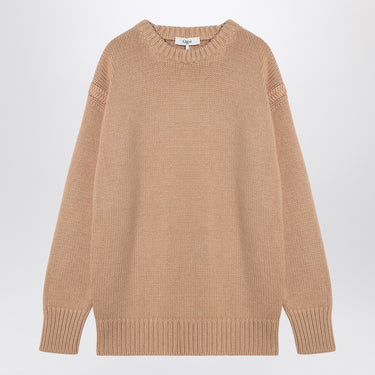Crew-neck jumper by Chloé in Nude-coloured cashmere and cotton featuring an oversized design, long sleeves with low shoulders, and a ribbed collar, cuffs and hem. Size and Fit - Model wears size S Model measurements: Height: 179 cm Chest: 82 cm Waist: 60 cm Hips: 89 cm