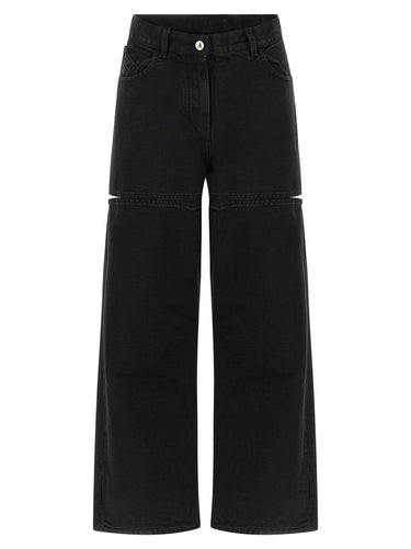 Garment-dyed cotton denim jeans, low crotch, back cut-out details, wide straight leg, front zip and button closure, five pockets, leather logo tag. Size and Fit - true to size fit