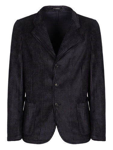 black corduroy three-button fastening notched lapels two pockets long sleeves Single-breasted blazer jacket