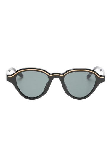 black geometric frame tinted lenses nose pads These glasses come with a protective case.