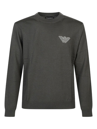 green wool embroidered logo crew neck long sleeves ribbed trims Wool crewneck jumper