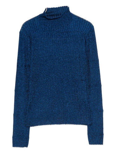 blue ribbed knit long sleeves turtleneck Turtle-neck sweater