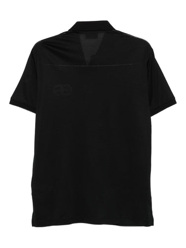 black short sleeves button fastening embroidered eagle logo ribbed collar Cotton blend polo shirt
