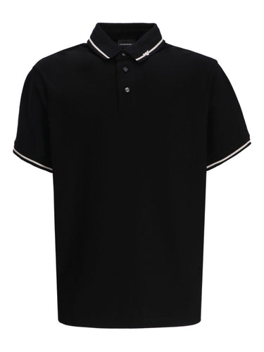 black short sleeves tipped collar with logo detail three-button placket cotton Cotton polo shirt