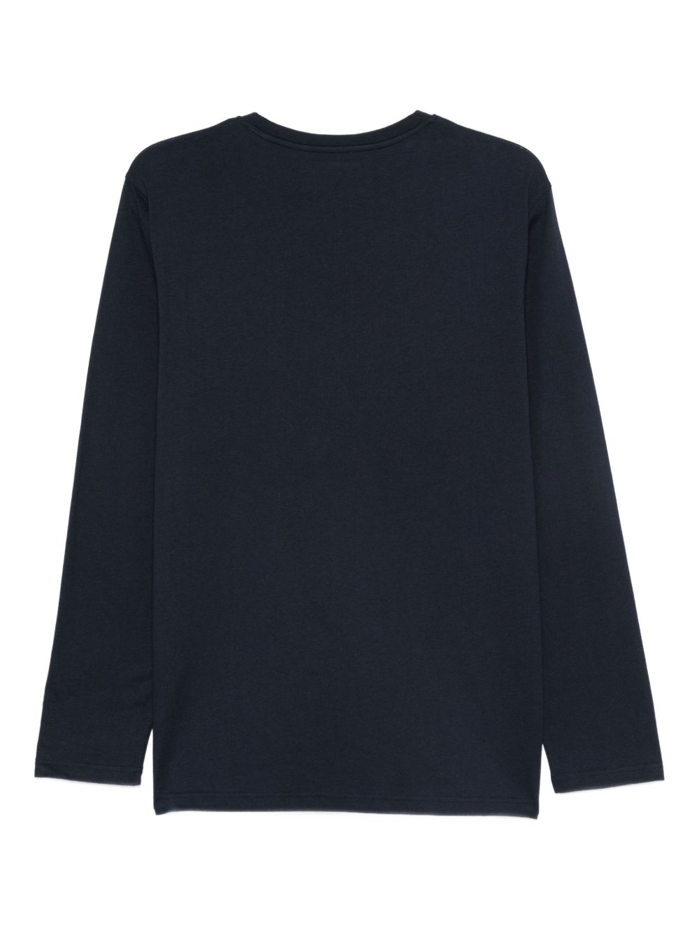 navy blue embroidered logo long sleeves crew neck gingham-pattern trousers elasticated waistband Cotton pajama top