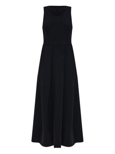black crew neck flared hem side slit pockets sleeveless Sleeveless long dress