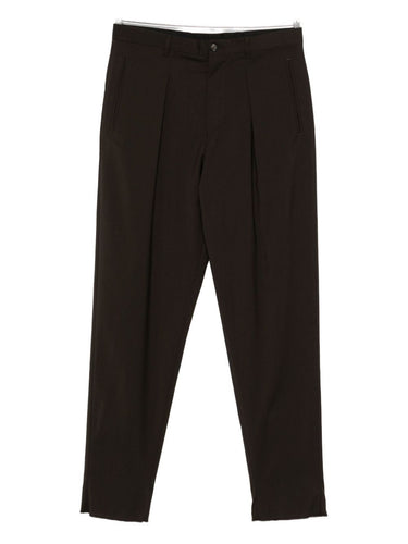 brown pleated front belt loops side seam pockets front button fastening straight leg