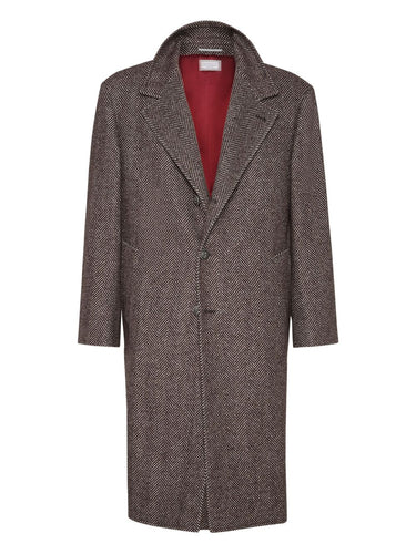 brown herringbone pattern three button fastening notched lapel long sleeves straight hem Cashmere and silk single breasted coat
