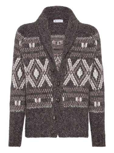 Brunello Cucinelli Brunello Cucinelli Alpaca, virgin wool and cashmere geometric jacquard cardigan with metal buttons