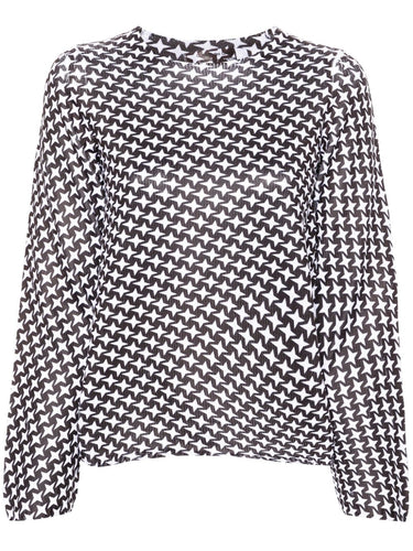 cedar brown/white fine ribbed star print round neck long sleeves straight hem Printed t-shirt Size and Fit - This piece fits true to size. We recommend you get your regular size. Model is 1,75m / 5ft 8in wearing size S