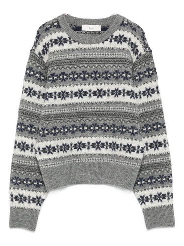grey fairisle pattern round neck long sleeves ribbed cuffs ribbed hem Wool blend crewneck jumper
