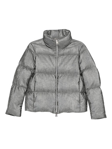 grey quilted design high collar zip fastening long sleeves straight hem Velvet short down jacket