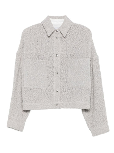 light grey textured weave button fastening patch pockets collared neckline long sleeves Pabli cotton jacket