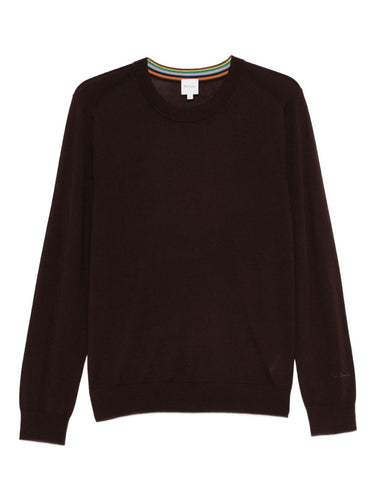 dark brown round neck long sleeves ribbed cuffs straight hem Wool crewneck sweater