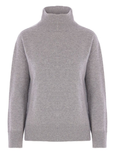 light grey ribbed hem and cuffs turtleneck knitted construction Cashmere turtleneck sweater
