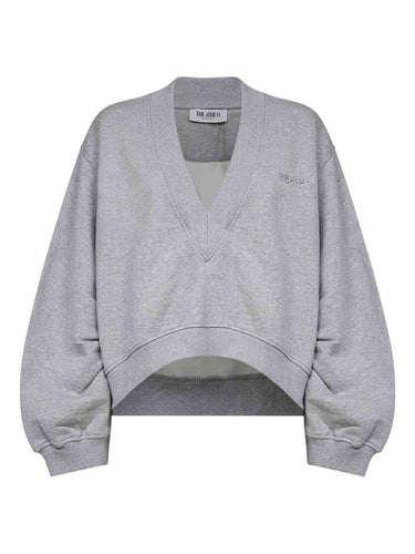 grey V-neck long sleeves dropped shoulders gathered detailing logo detail ribbed cuffs and hem Felpa in cotone con logo Size and Fit - This piece fits true to size. We recommend you get your regular size. Model is 1,75m / 5ft 8in wearing size 40 (IT)