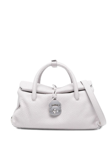 grey pebble texture top handle metallic clasp studded detailing roll-top closure Dotta Centauro small leather handbag Size and Fit - DEPTH: 15.0 Centimetres. HANDLE: 15.0 Centimetres. HEIGHT: 17.0 Centimetres. WIDTH: 32.0 Centimetres.