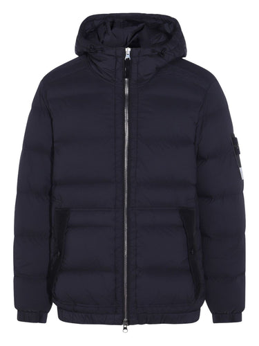 black quilted design zip fastening hooded neckline signature detachable Compass badge Short hooded down jacket
