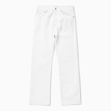 Washed denim cotton jeans by 1989 Studio featuring belt loops, zip and button fastening, five pockets design, knee pleats and logo label on the back. Size and Fit - Model wears size: 32 Model height: 189 cm Total side lenght with belt: 115 cm Inside leg lenght: 81,5 cm1/2 waist width: 45 cm1/2 hips width: 55,8 cm1/2 bottom width: 24,5 cm