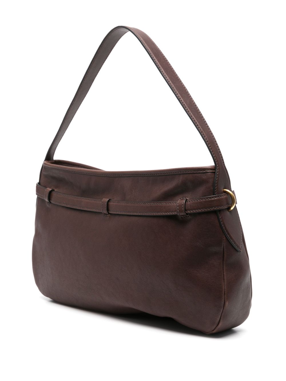 In chestnut brown leather with a sleek front embossed logo, the Aventure bag features a secure top-zip closure, a single shoulder strap for streamlined carry, and a tidy interior with a zip pocket to organize daily essentials. Its clean, modern silhouette makes it an elegant choice for everyday wear through the Spring–Summer season and beyond.
