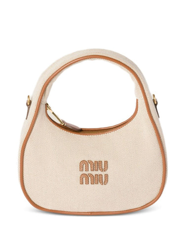 Wander Small Canvas & Leather Hobo by Miu Miu