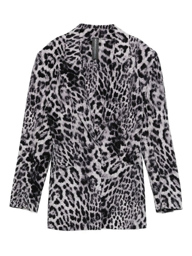 grey leopard print peak lapels long sleeves button fastening Leopard print single-breasted jacket Size and Fit - This piece fits true to size. We recommend you get your regular size. Model is 1,75m / 5ft 8in wearing size S