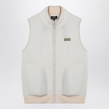 White wool blend fleece waistcoat by A.P.C., features a high collar, a front zip fastening, a lettering logo patch on the chest, two welt pockets on the front and a ribbed hem. Size and Fit - Model wears size L Model measurements: Height: 188 cm Chest: 100 cm Waist: 76 cm Hips: 96 cm