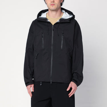 Black water-repellent nylon jacket from Purple Mountain Observatory, characterized by a front closure with double zip, hood with drawstring, four front pockets with zip, small tone-on-tone logo print, and long sleeves with adjustable cuffs. Size and Fit - Model wears size L Model measurements: Height: 185 cm Chest: 105 cm Waist: 85 cm Hips: 100 cm